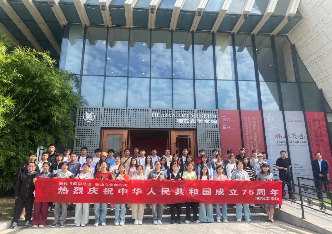 活动二:10月1日上午,王红艳、林凯两位老师组织研学团队和班级同学开展了“透过书画学总理,建功立业新时代”的研学之旅。在淮安市美术馆,师生和淮安市民共同见证了江苏省书法院向周恩来总理家乡捐赠作品仪式。师生在欣赏周恩来诗词、语录以及后人讴歌周恩来崇高精神风范的丹青墨韵中深化了对周恩来总理的缅怀和敬仰之情。在现场,两位老师为同学讲解典型书画作品背后的故事,师生交流了新时代青年员工应该怎样学习和践行周恩来崇高精神风范,为中华民族伟大复兴贡献青年力量。