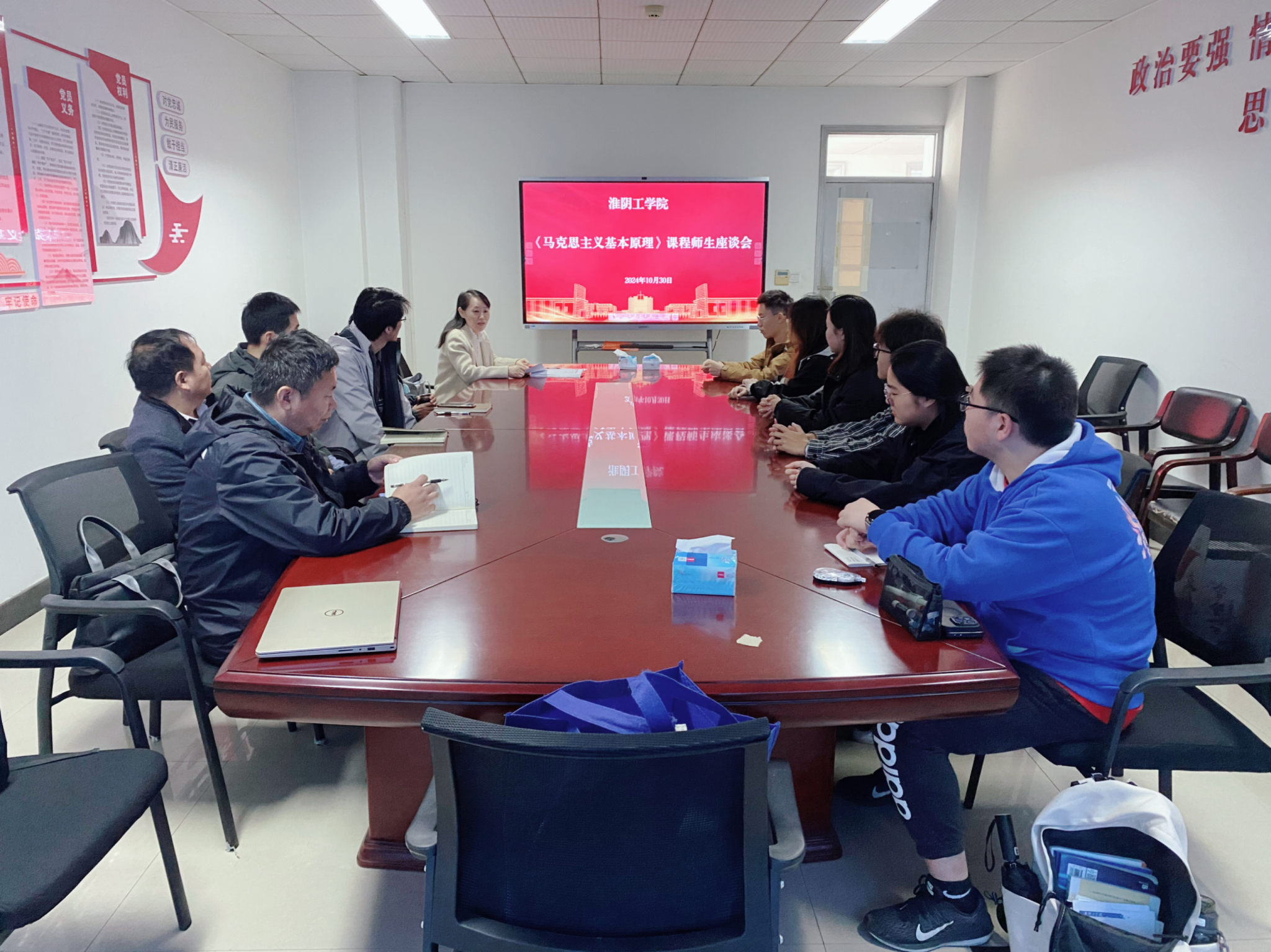 为深入探索马克思主义基本原理教学新路径,持续推动思政课建设提质增效,2024年10月30日上午,马克思主义基本原理教研室在YF901会议室召开师生座谈会。会议由教研室副主任刘莲香主持,教研室全体教师参会。