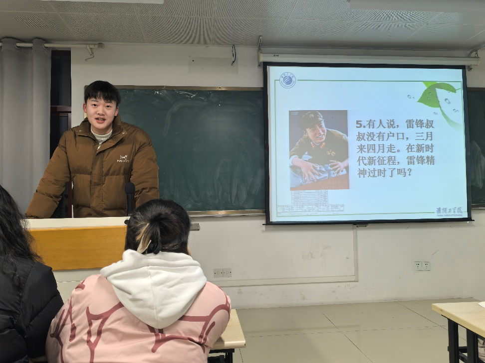 “讲雷锋故事”“读雷锋日记”的同学情感饱满,以情带声,以声传情,以情感传递雷锋精神的温度,叩击听众的心灵。在“悟雷锋精神”环节,同学们围绕“雷锋精神六连问”展开了热烈的课堂讨论,同学们结合时代背景和教材内容各抒己见,思想火花不断碰撞,争先恐后跃上讲台阐述自己的观点,教室里响起一阵阵热烈的掌声。