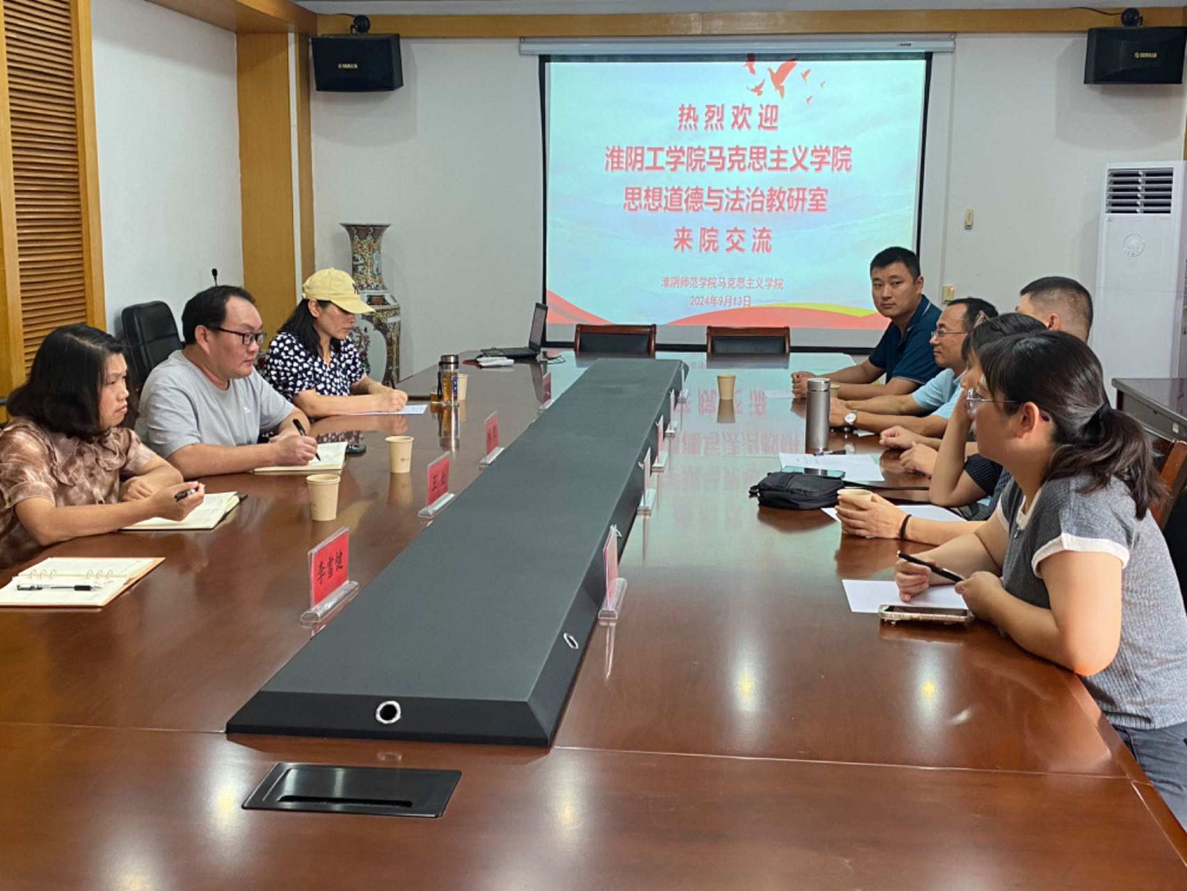2024年9月13日,公司云顶国际8588yd思想道德与法治教研室在教研室主任林凯和支部书记王红的带领下,赴淮阴师范公司云顶国际8588yd调研交流。淮师马公司党委书记刘小华、思想道德与法治教研部主任岑乾明等6人参加交流。双方围绕课程建设、教学科研、支部党建等展开深入交流,并就进一步往来与合作达成共识。
